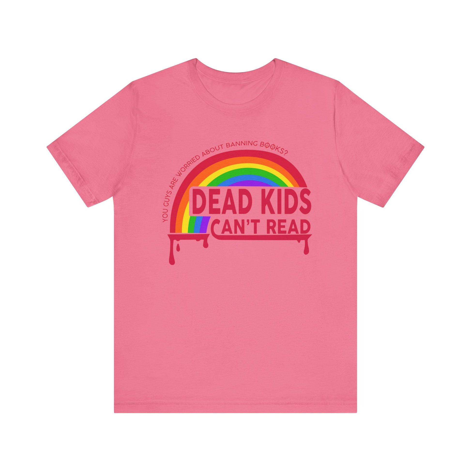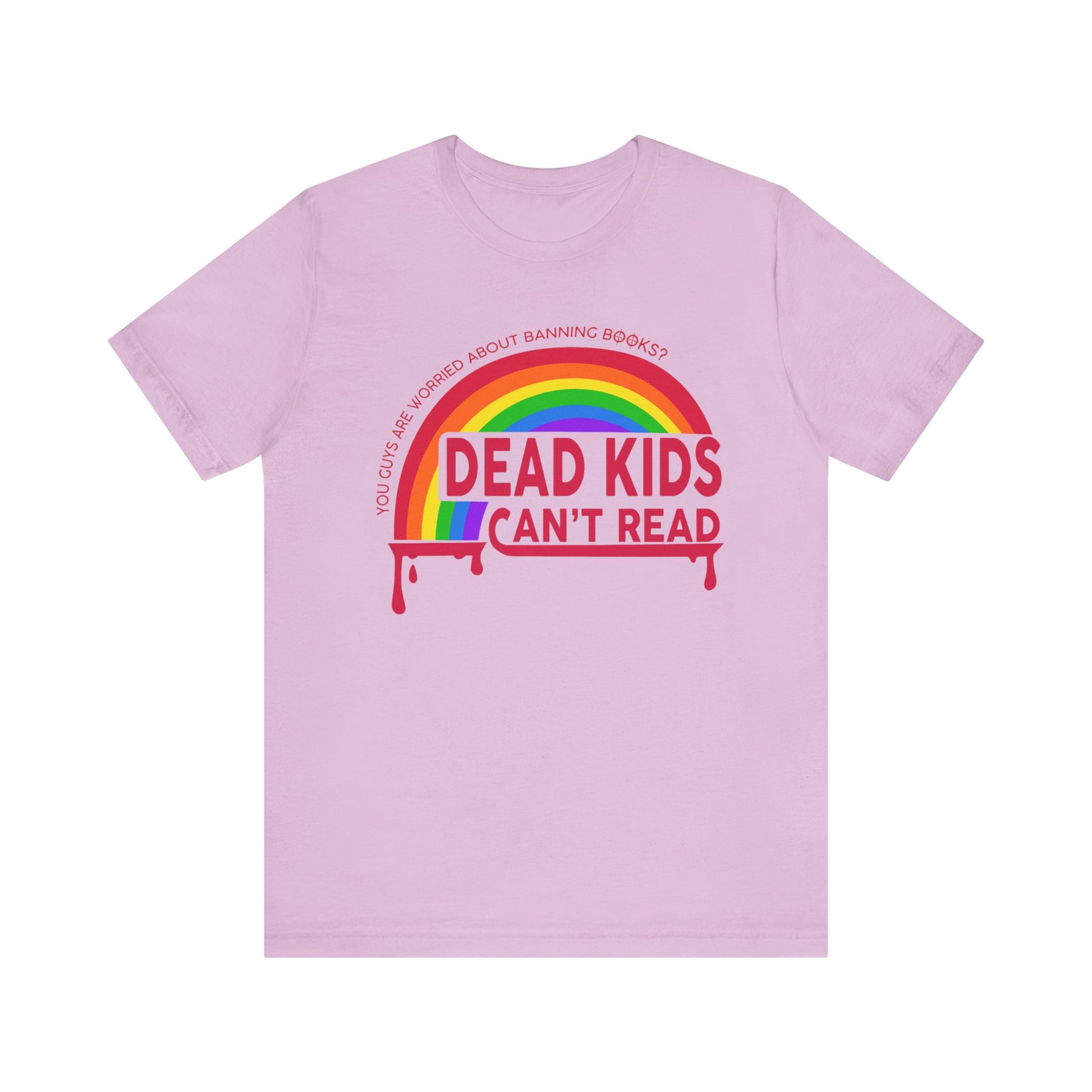 Reading rainbow inspired design with his quote “you guys are worried about banning books? Dead kids can’t read”