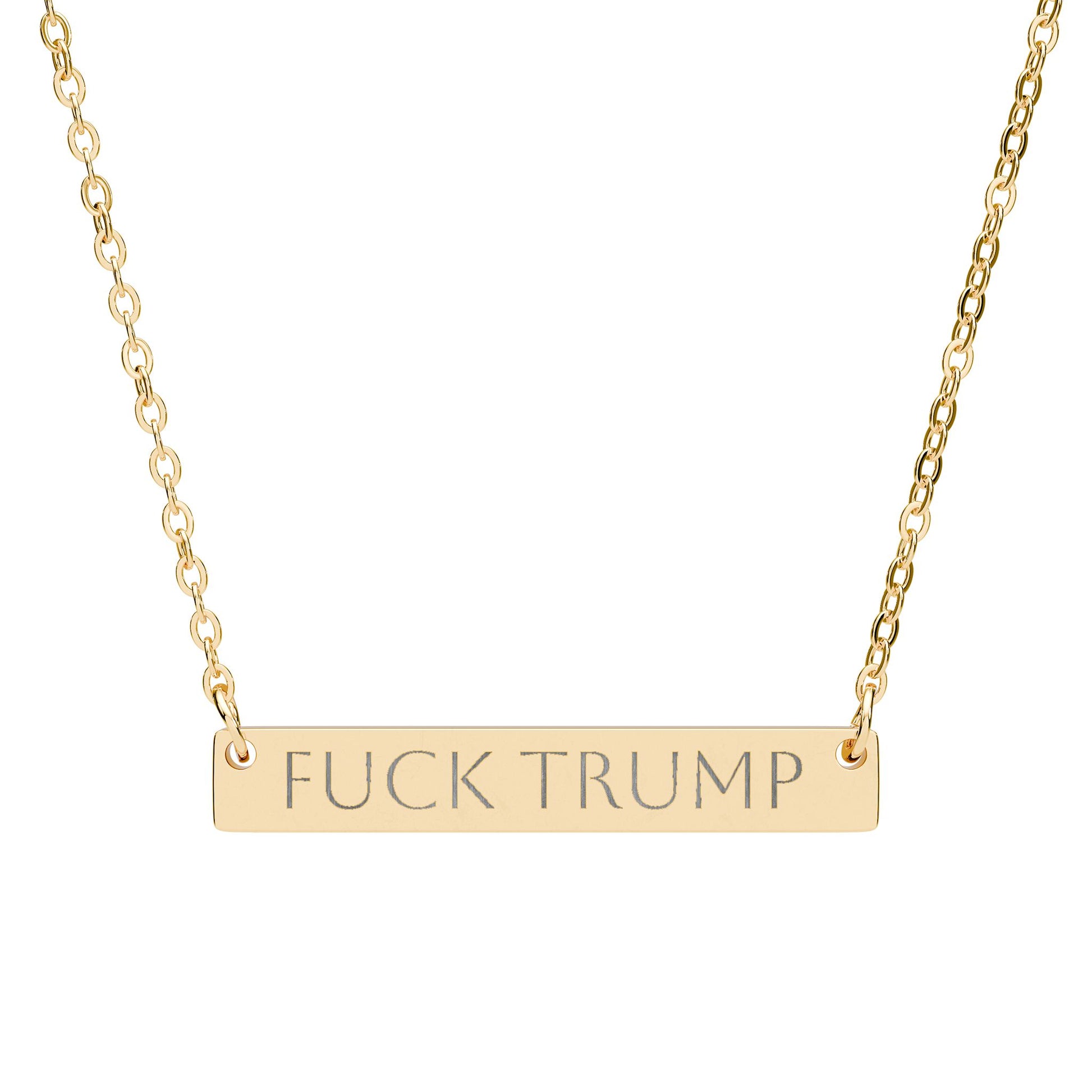 Engraved F Trump Horizontal Bar Necklace | Political Phrase Pendant