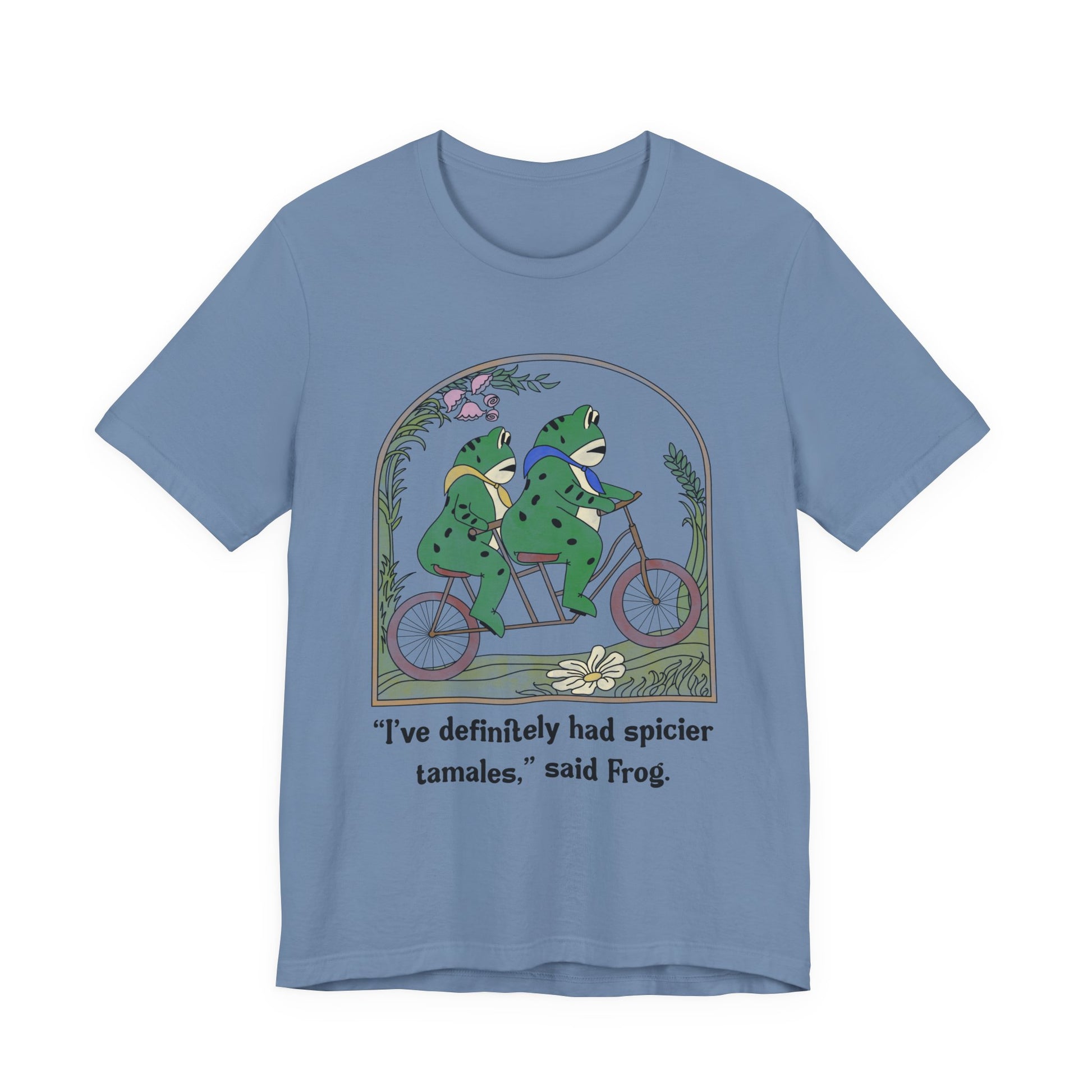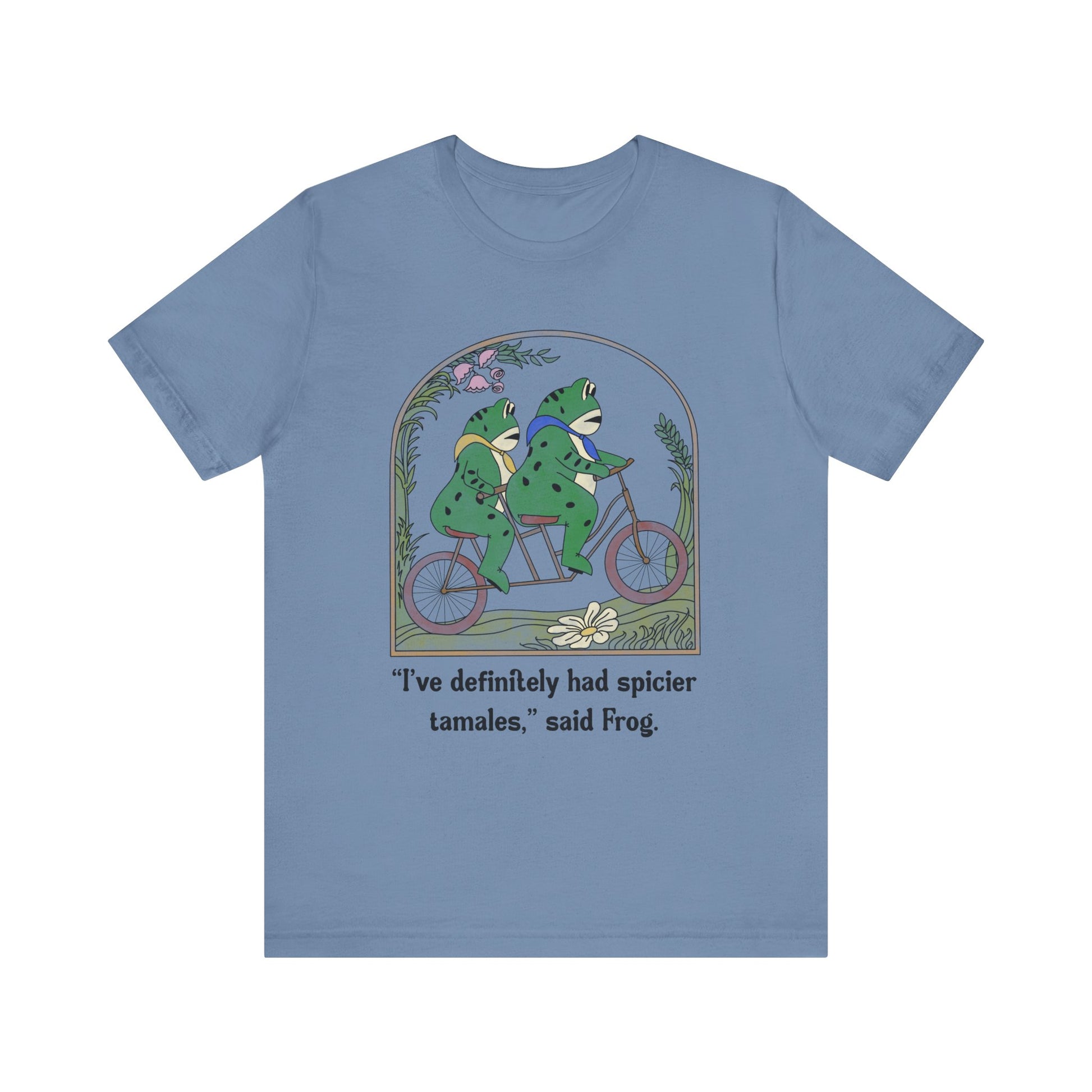 Embrace your playful side with this Unisex Jersey Short Sleeve Tee, ideal for casual outings and relaxed gatherings. The charming design features a whimsical illustration of two frogs on a bicycle, sure to spark smiles and conversations. This tee offers a comfortable and breathable fit, making it perfect for warm days or layering during cooler seasons. Its versatile style fits seamlessly into any wardrobe, suitable for both men and women. Whether you're celebrating casual moments with friends or enjoying leisurely weekends, this shirt is perfect for birthdays, fun celebrations, or simply brightening up your day!