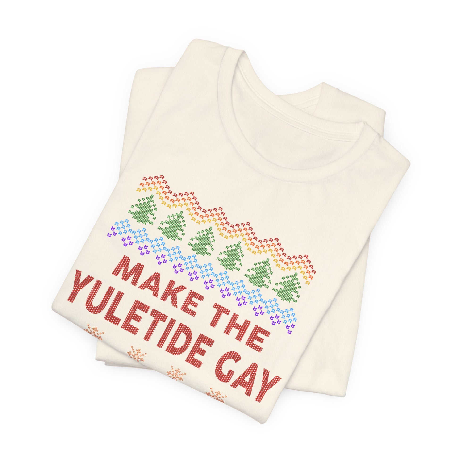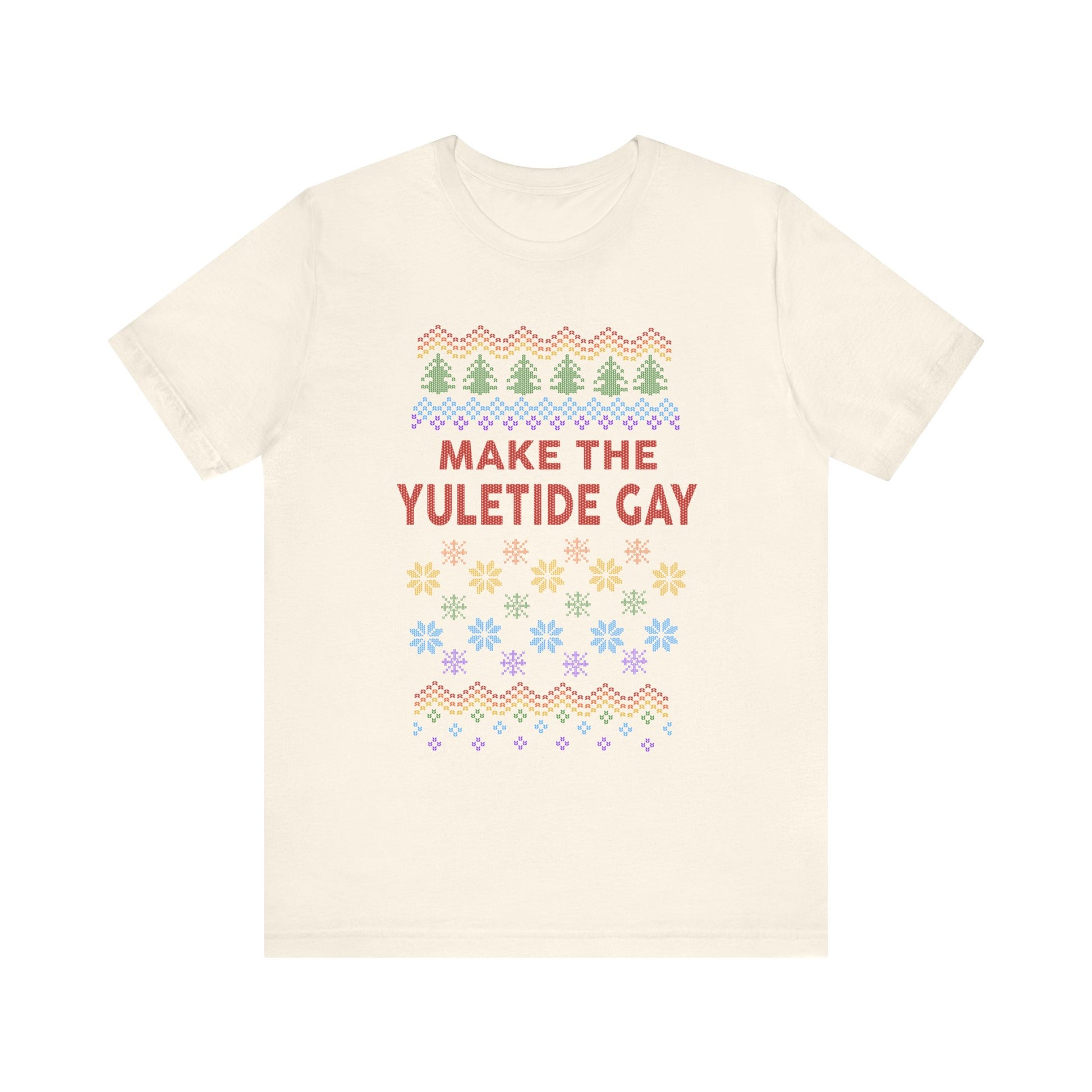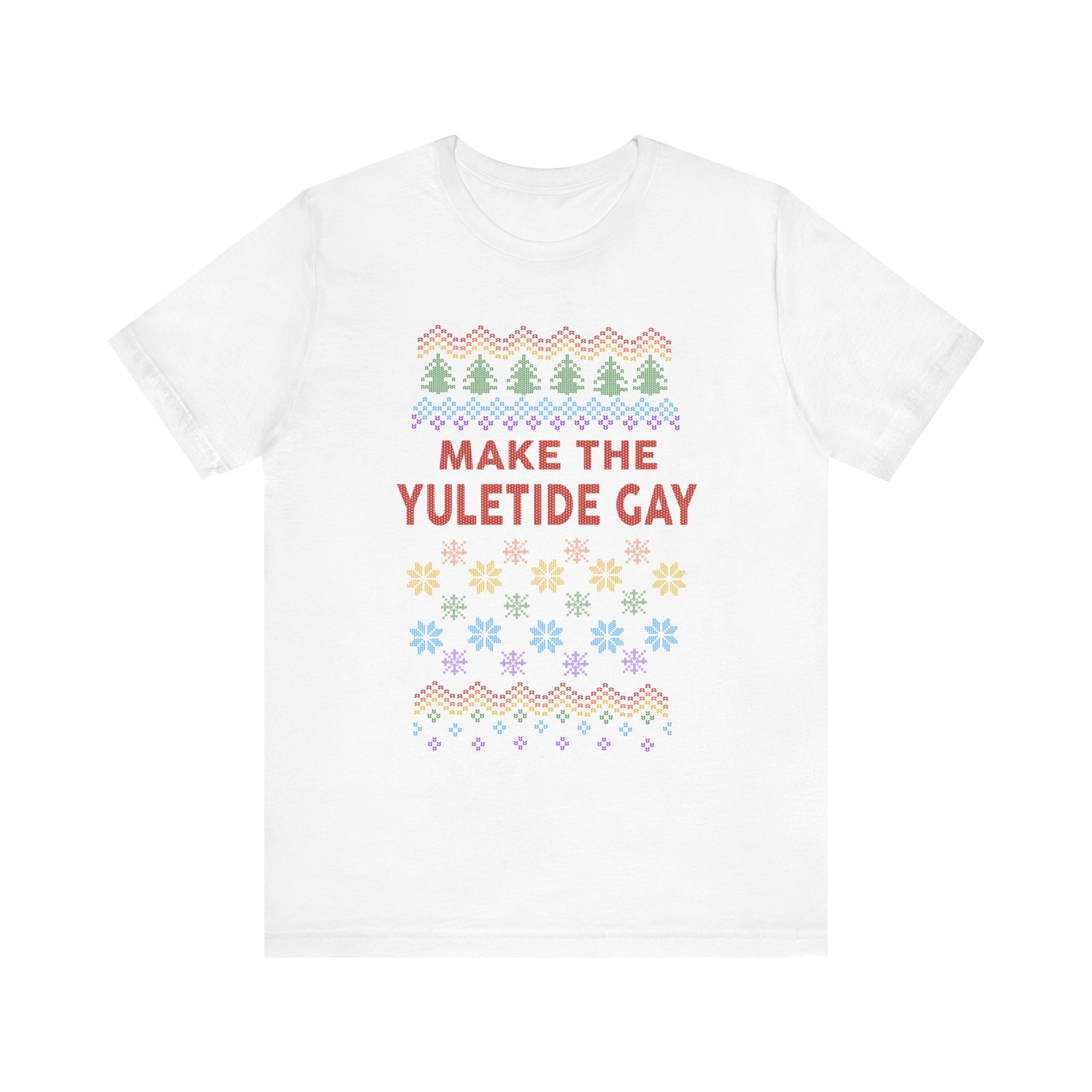 Make the Yuletide Gay Ugly Sweater Unisex Jersey Short Sleeve Tee