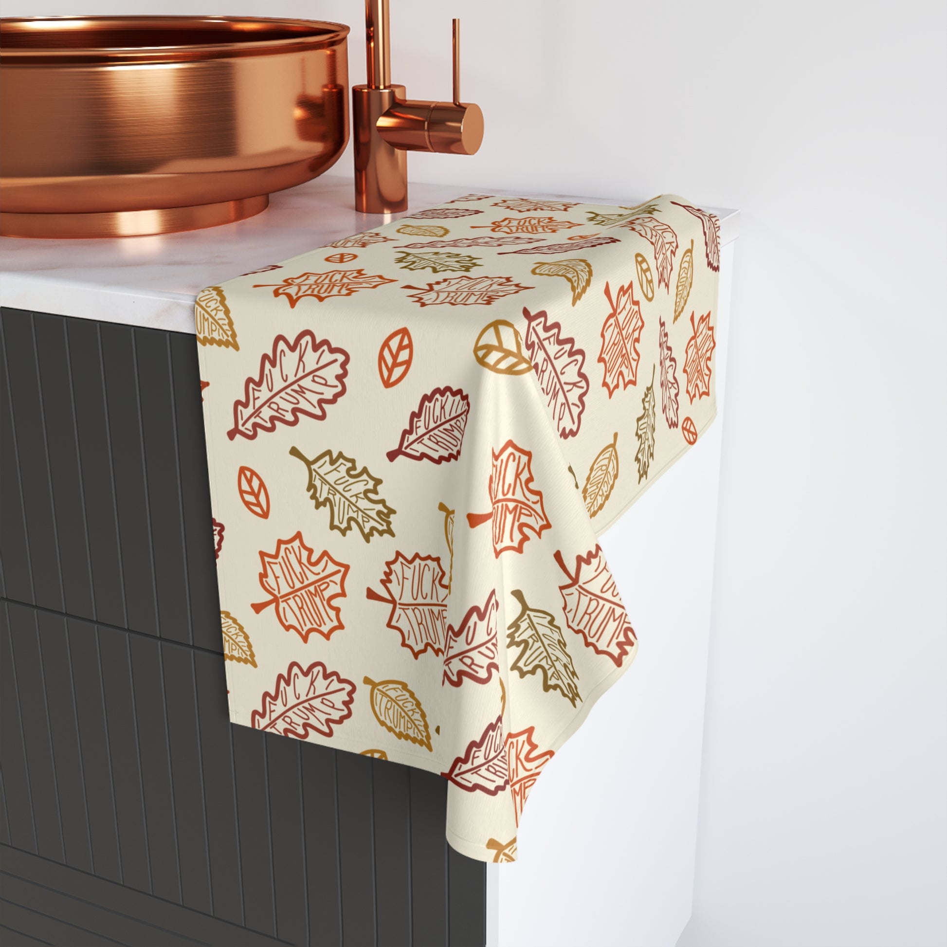 Slightly Subtle Autumn Leaves Hand Towel, Cozy Kitchen Decor, Trump Fall Home Gift, Thanksgiving Towel, Floral Bath Towel, Harvest Kitchen Accessory
