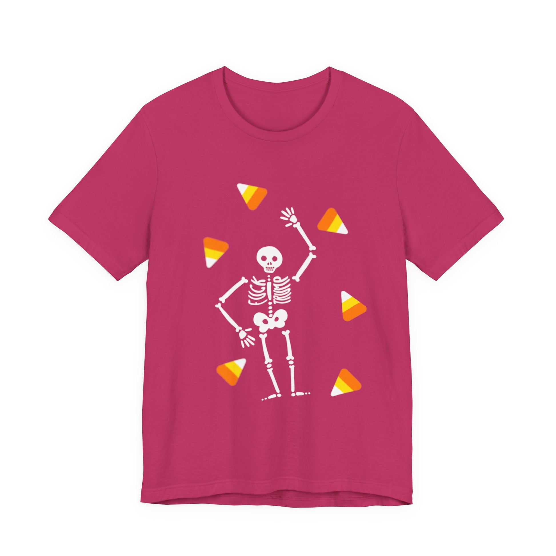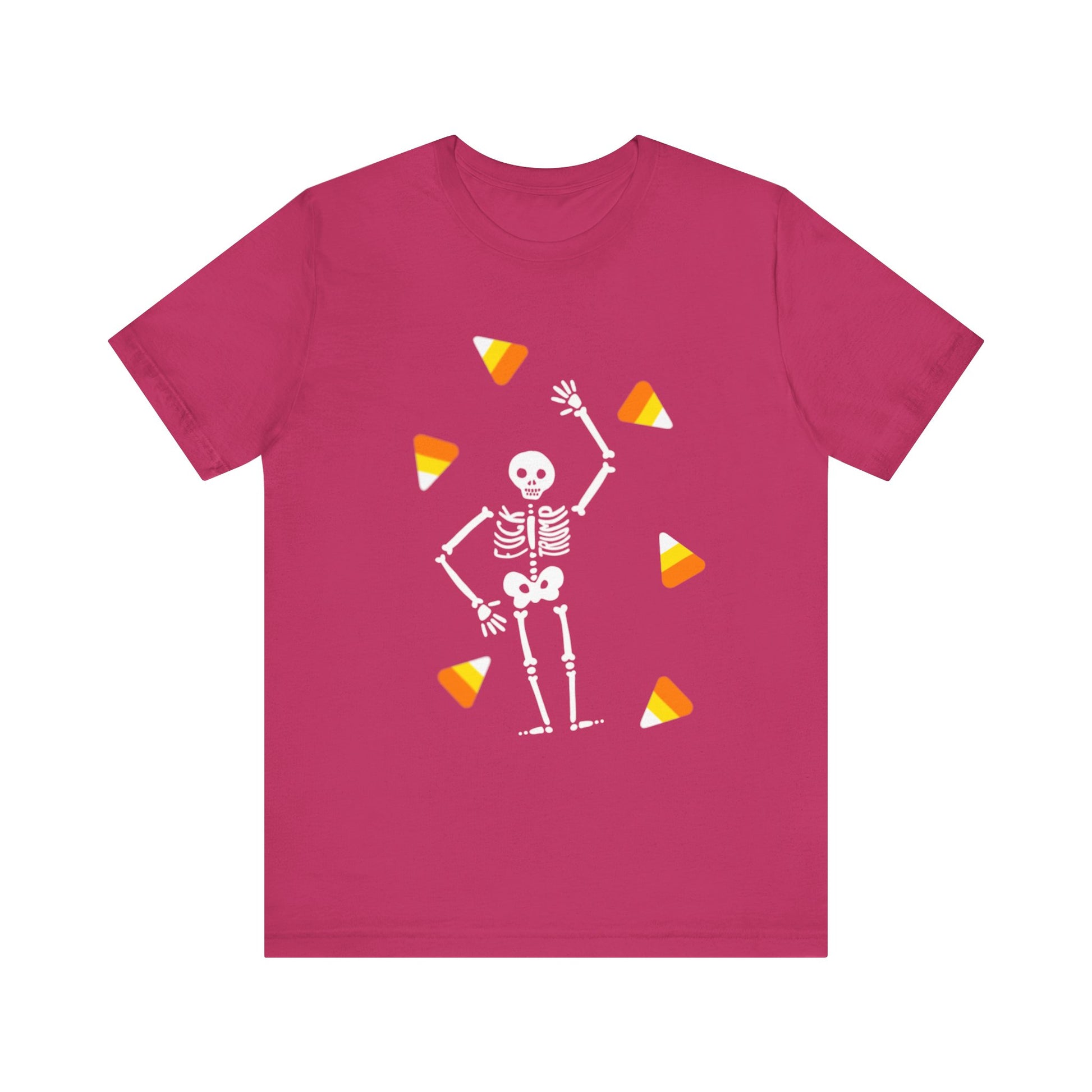 Introducing the perfect Unisex Jersey Short Sleeve Tee that combines comfort with playful style. This tee features a delightful skeleton design surrounded by colorful candy corn, bringing a festive vibe to your wardrobe. Perfect for Halloween celebrations, this shirt not only allows you to showcase your fun side but also keeps you comfortable through all the festivities. Ideal for friends, families, or anyone looking to add a touch of spooky charm to their casual wear. Layer it under a jacket or wear it on its own for a relaxed look. Suitable for casual outings, parties, or cozy nights in, this hoodie is a versatile piece that enhances your seasonal wardrobe. Show off your unique personality while staying comfy and stylish!
