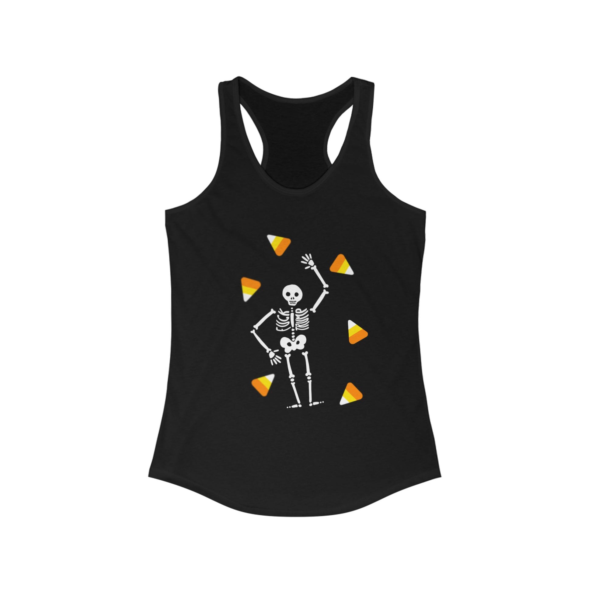 Slightly Subtle Halloween Skeleton Racerback Tank, Cute Spooky Workout Top, Fitness Apparel, Fall Clothing, Candy Corn Graphic Shirt