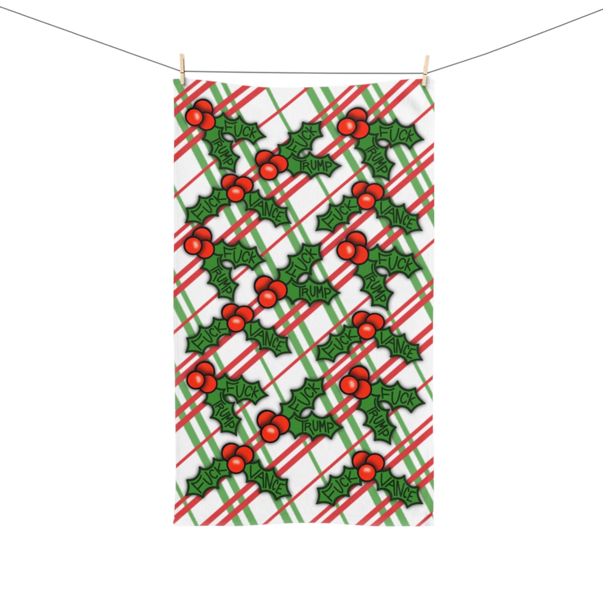 Slightly Subtle Holly Leaves Festive Holiday Hand Towel, Fun Christmas Decor, Kitchen Towel, Gift for Friends, Holiday Dinner Accessory, Home Decor