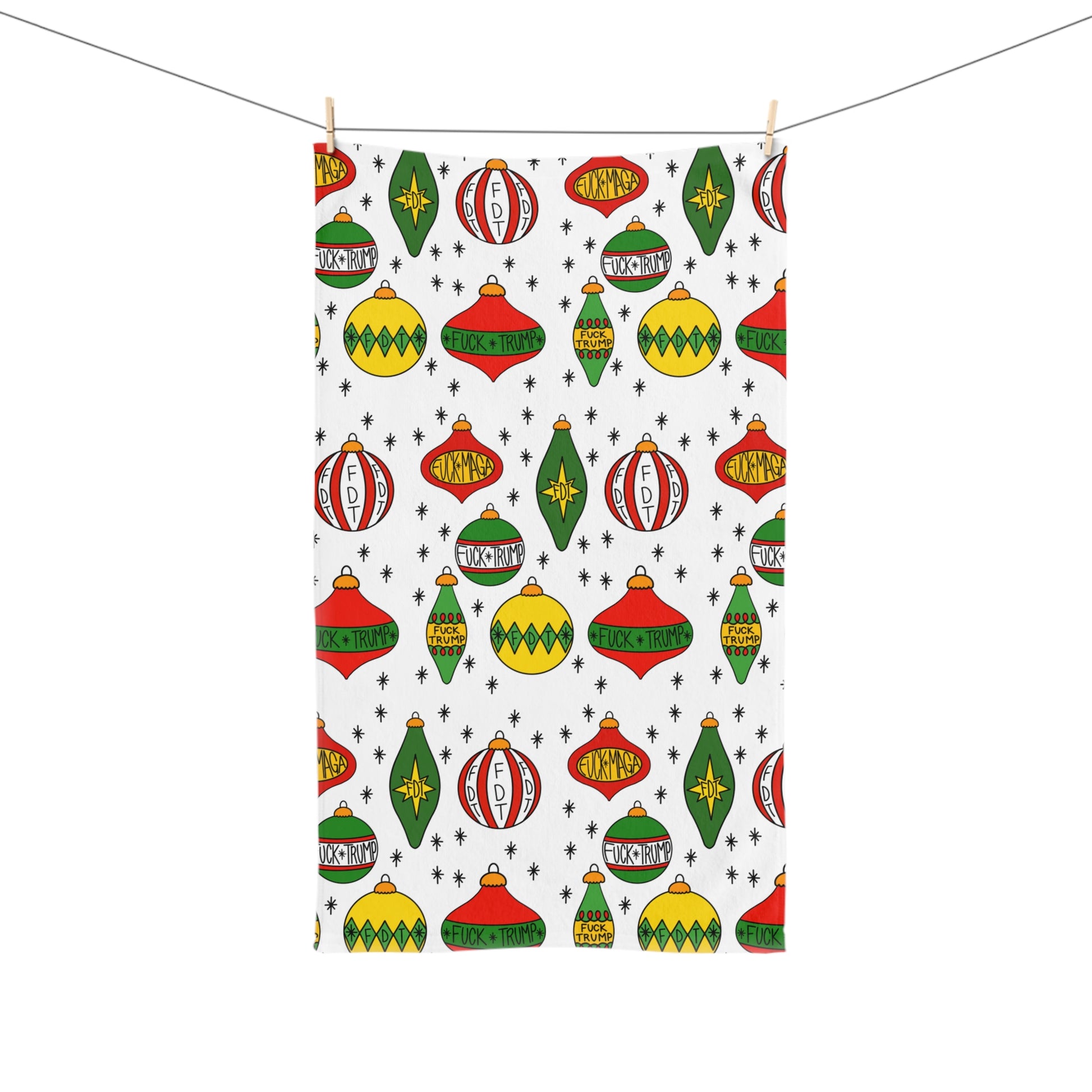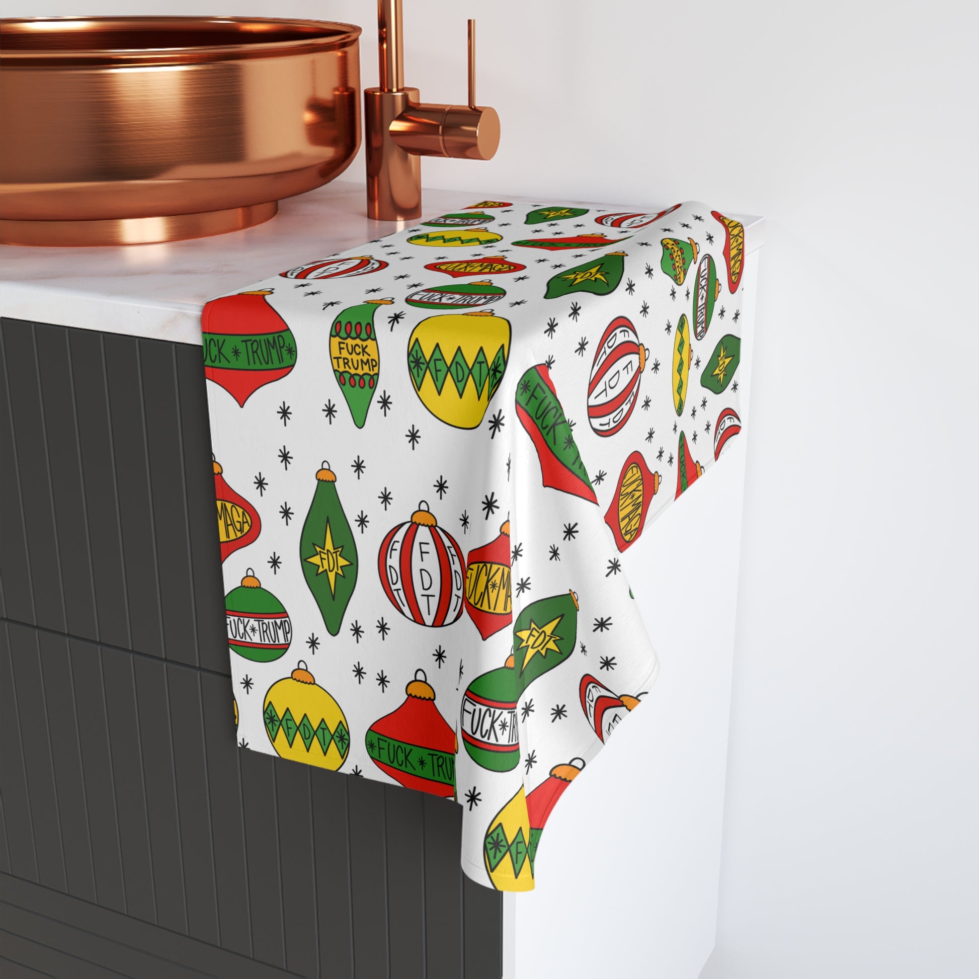 Slightly Subtle Ornament Red and Green Festive Holiday Hand Towel Kitchen Decor Christmas Gift FDT Seasonal Party Supplies, Bright Tea Towel