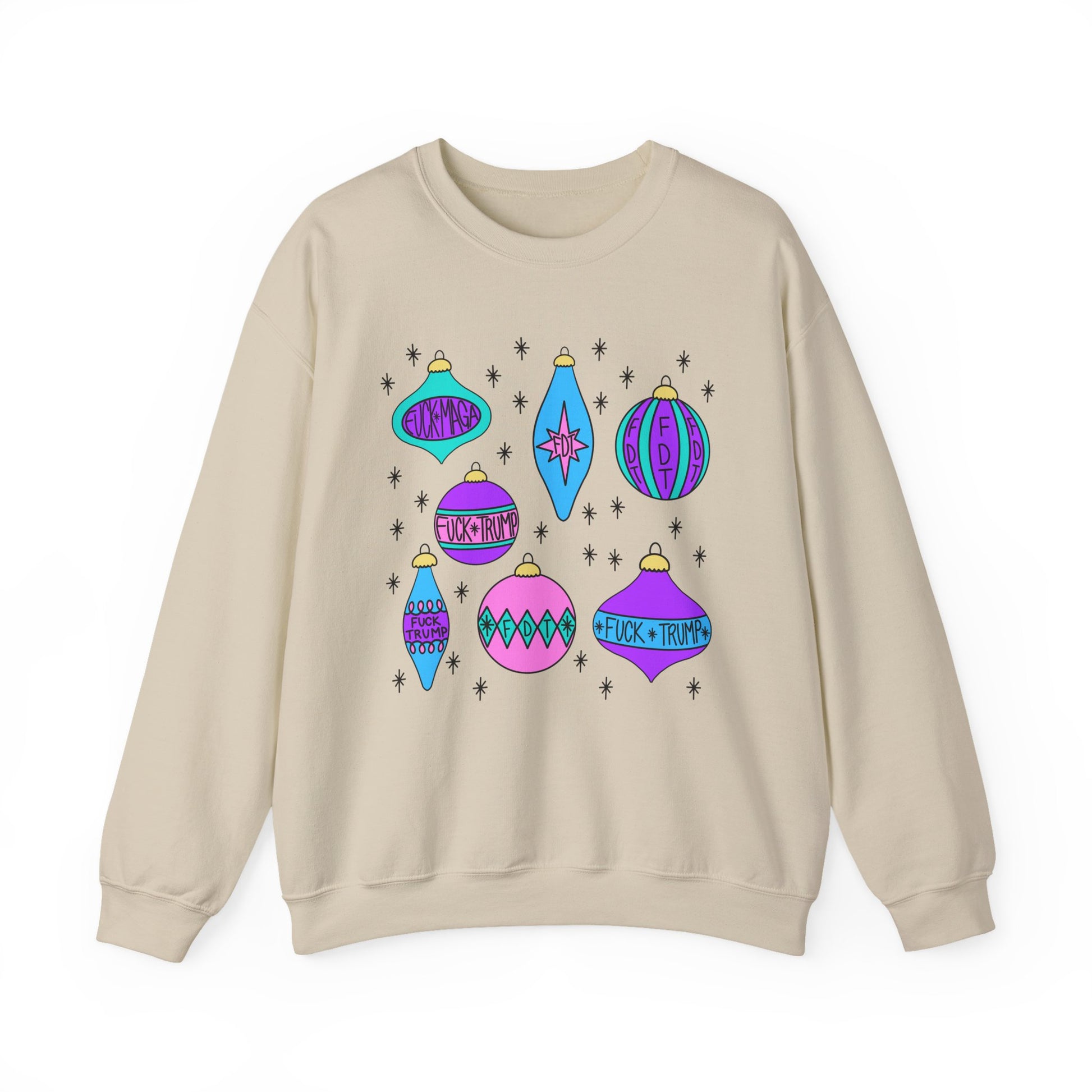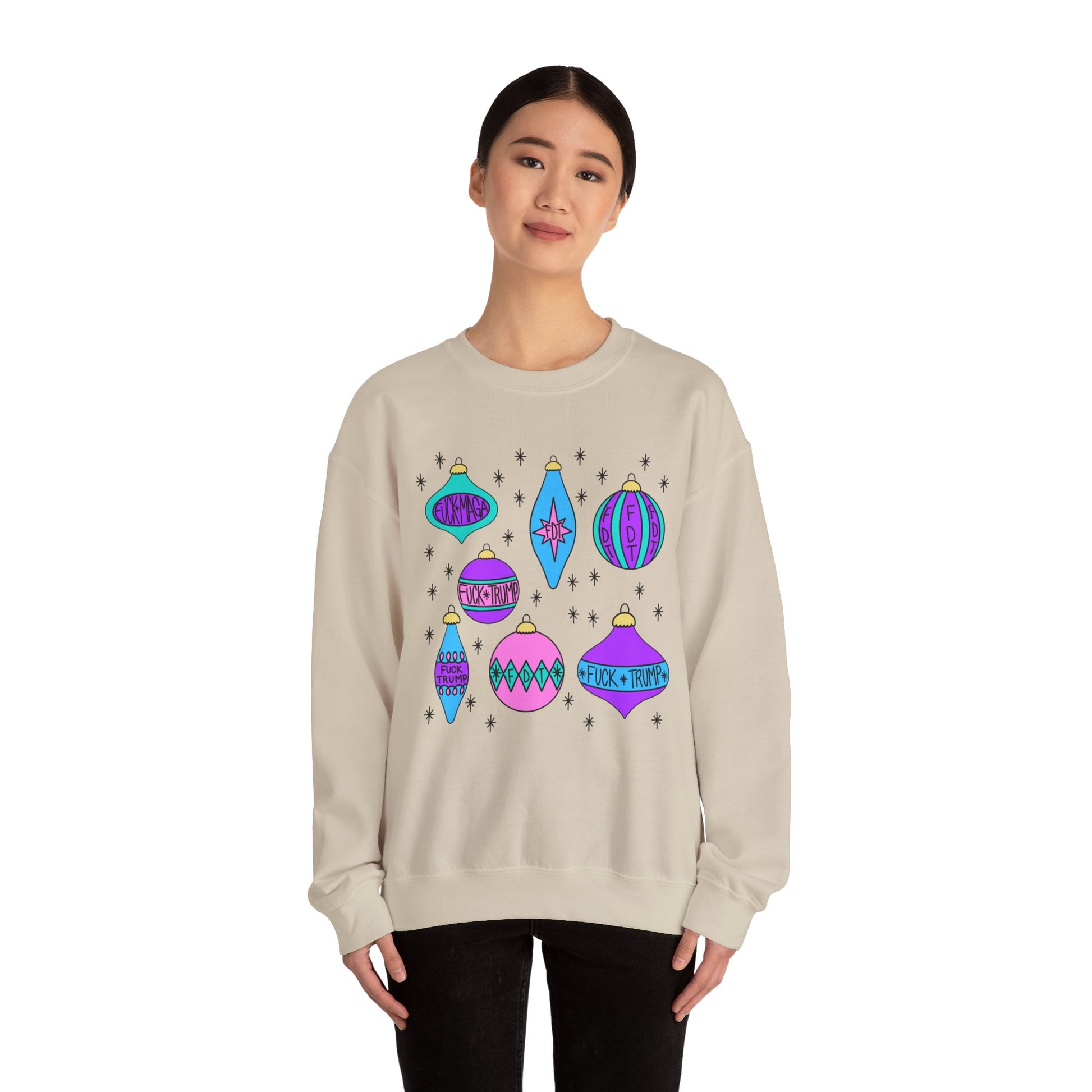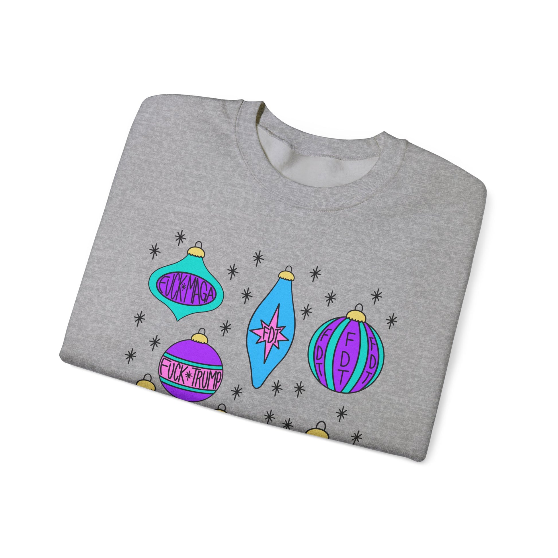 Slightly Subtle Ornaments Colorful Holiday FDT Sweatshirt, Cozy Unisex Crewneck Christmas, Gift for Her, Winter Wear, Festive Apparel