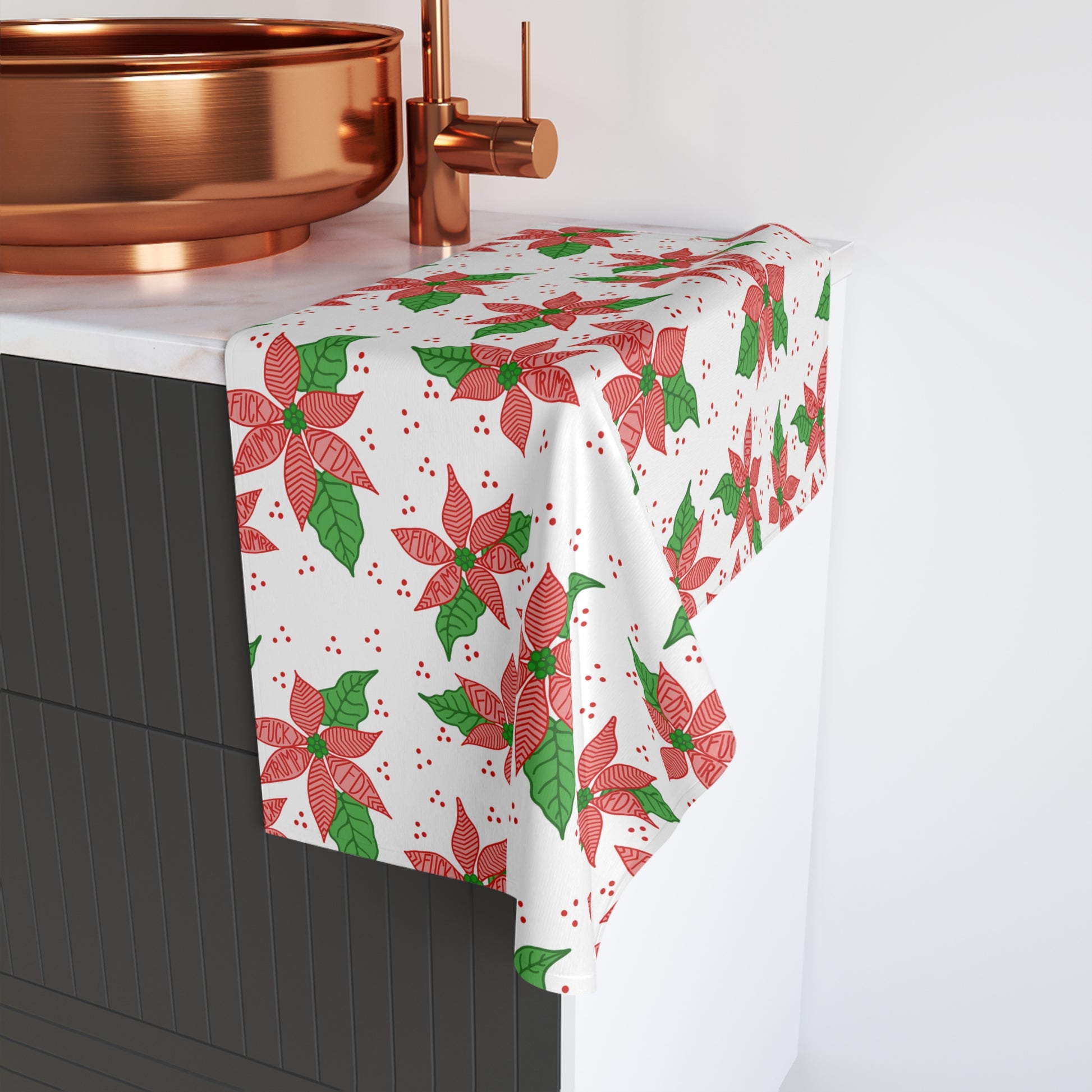 Brighten up your home with this charming hand towel, featuring a vibrant poinsettia design. Perfect for holiday gatherings or daily use, this towel adds a festive touch to your kitchen or bathroom. Its soft, lightweight fabric feels gentle against your skin, making it ideal for guests or your own enjoyment. Whether you're celebrating Christmas, hosting family dinners, or simply looking to refresh your decor, this hand towel is a delightful addition to any home. Great for anyone who loves unique home accessories or is searching for a thoughtful gift during the holidays.