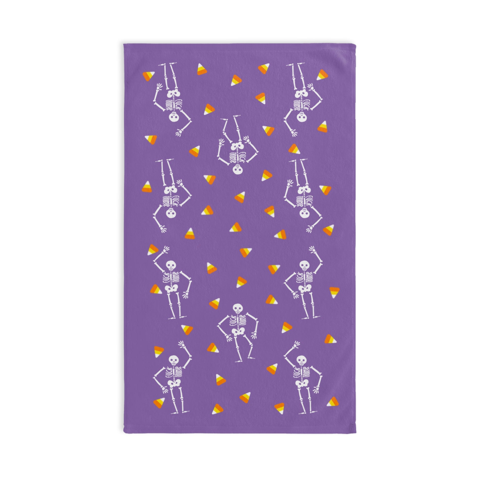 Introducing our whimsical Hand Towel, a delightful addition to your kitchen or bathroom decor. This towel features a playful skeleton and candy corn design, perfect for bringing a festive spirit to your Halloween celebrations. Experience the soft touch and vibrant colors that brighten up your space, making chores a little more cheerful. Its lightweight and absorbent material ensures it's not just eye-catching but also practical for daily use. Ideal for those who love to express their personality through unique home accessories, this towel is an excellent choice for anyone looking to add a touch of fun to their home. Celebrate not only Halloween but also every festive occasion with this charming piece, whether it's a spooky gathering or simply a cozy autumn evening at home.