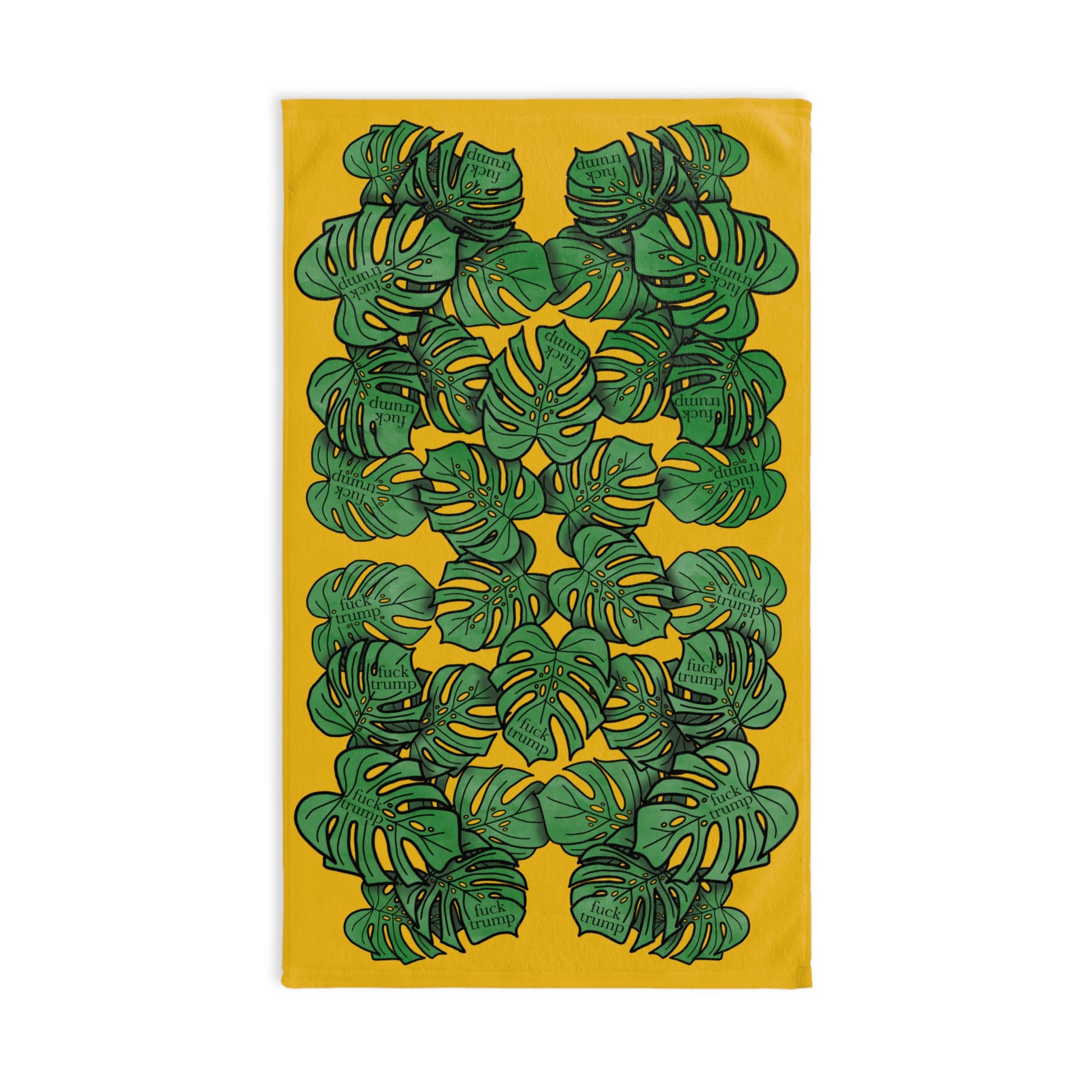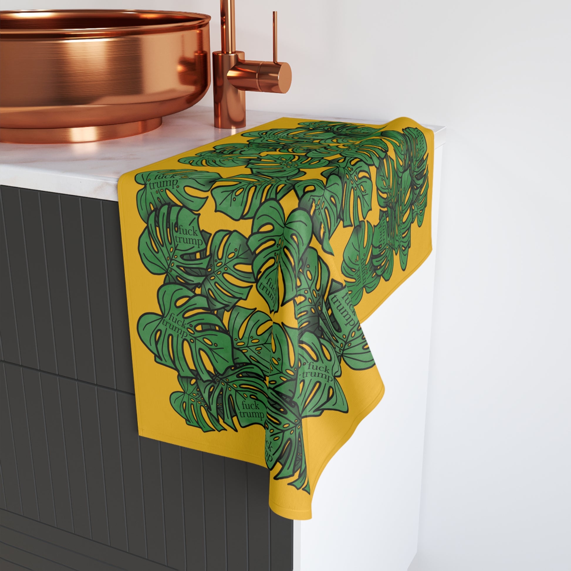 Slightly Subtle Tropical Monstera Yellow Hand Towel, Botanical Kitchen Bathroom Decor, Leafy Print Towel, Gift for Plant Lovers, Political Gag Gift